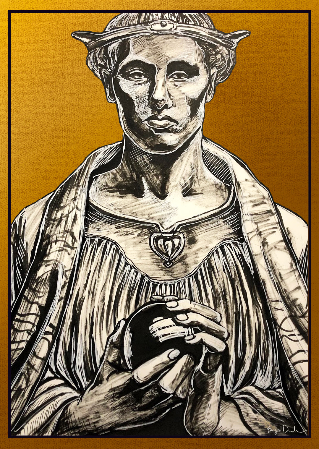 Statue Portrait: Ink & Digital Background 11 x 14 in.